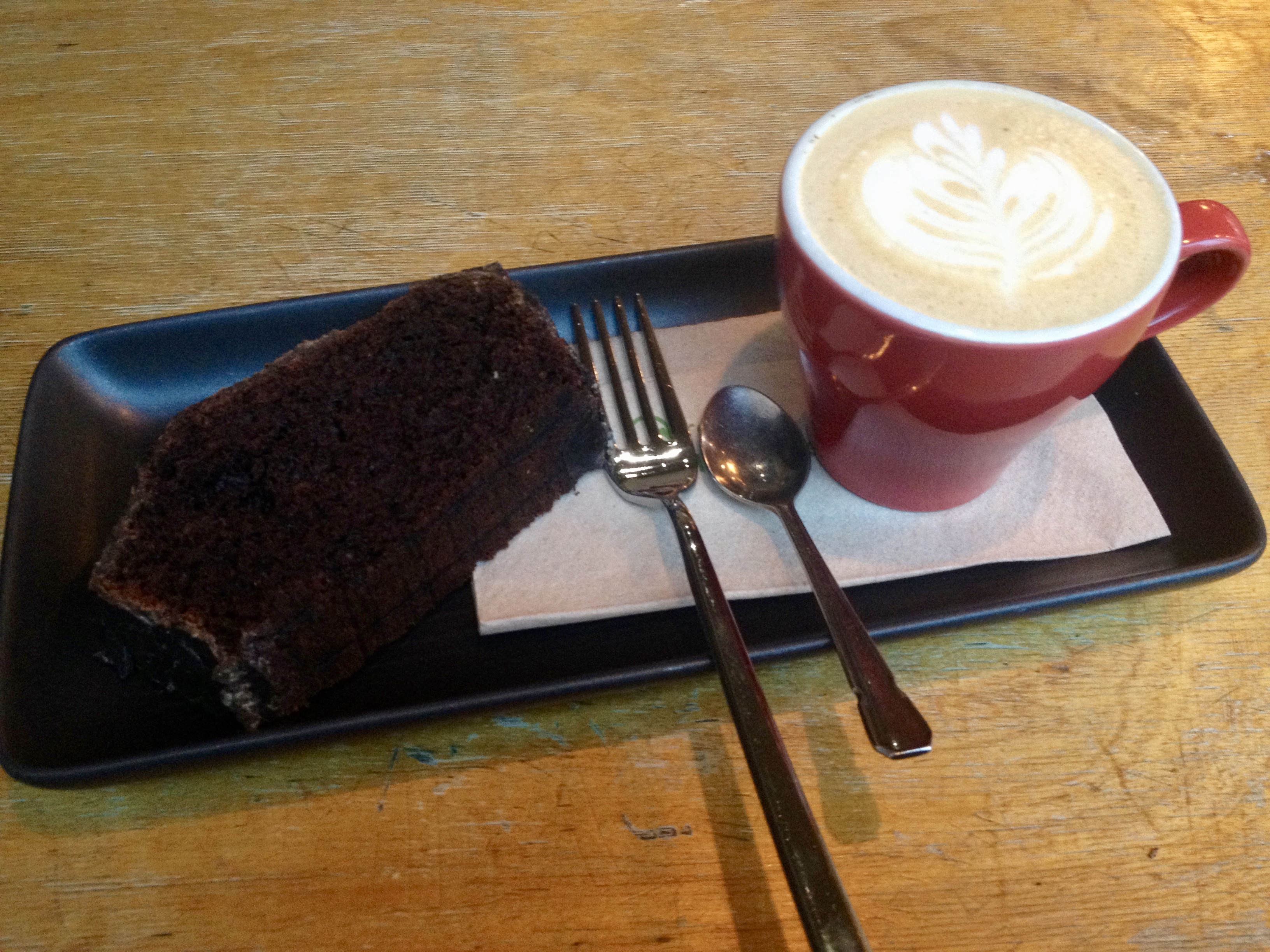 I creaked into action this morning as I had an 8.30 appointment in town after an intense four hour heavy sleep. My mind blurred by a heady alcohol free hangover feeling, I made a bee line for the nearest independent coffee place after I dropped my car off and ordered the above. It’s a vegan chocolate fudge cake which looked enticing enough but left a strange sensation in my mouth. After the week I’ve had, I felt I’d deserved a slightly naughty treat. I’ve tried a vegan chocolate brownie before which was ok but orangey and dense. My curiosity undeterred, in I went for another go. I don’t think vegan is for me, despite the global benefits. When the barista asked how everything was, I was honest in my feedback and thought afterwards I should have kept my mouth shut. There was nothing wrong with it. It just wasn’t right. I’m not vegan and I’m afraid I like cow. The coffee on the other hand was great.