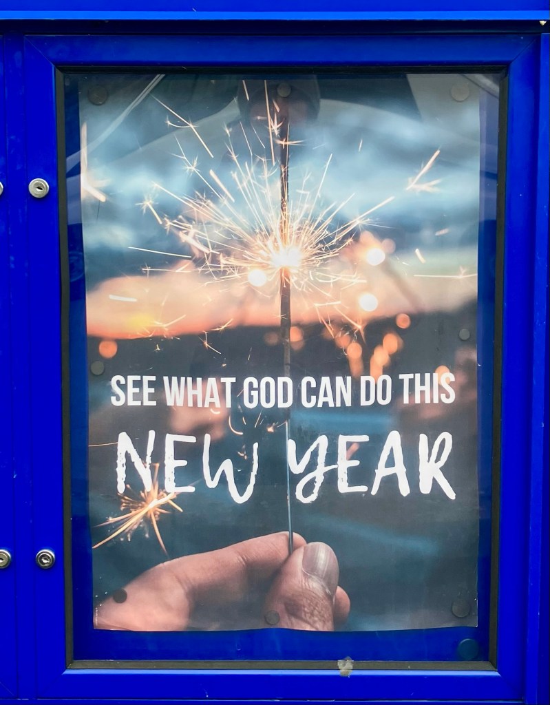 I didn’t have my glasses and read “ SEE WHAT GOOD YOU CAN DO THIS NEW YEAR”. I think I prefer my version