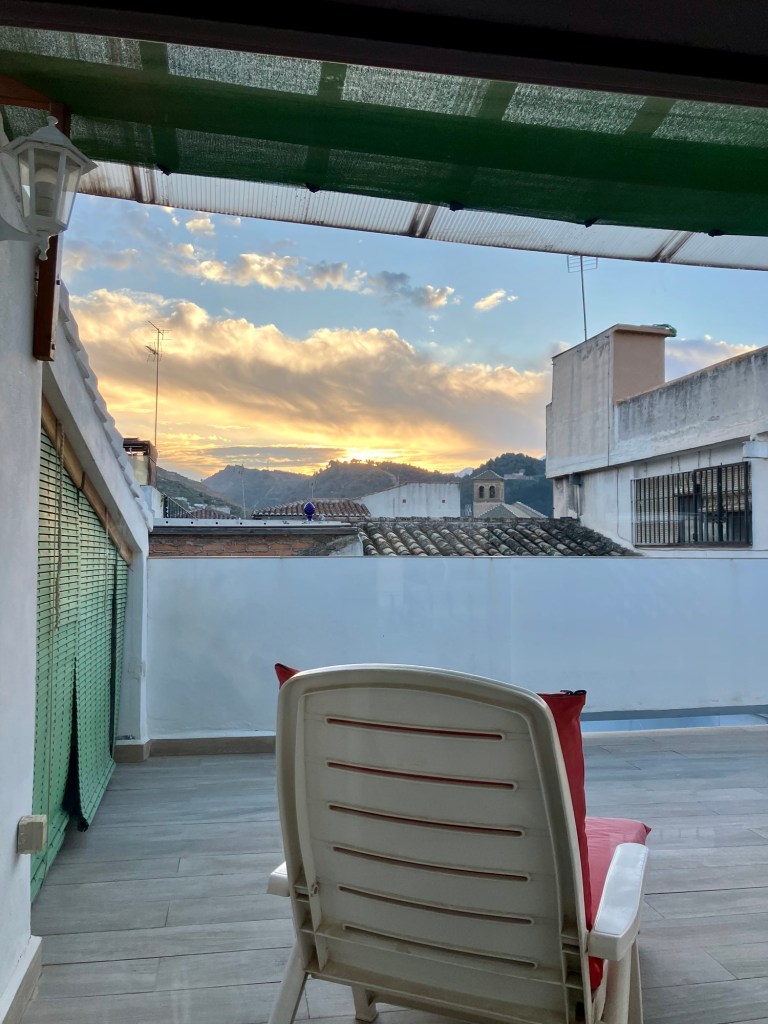 I made good use of the lounger, even on rainy days. You can see the Generalife gardens in the distance beneath the third hill
