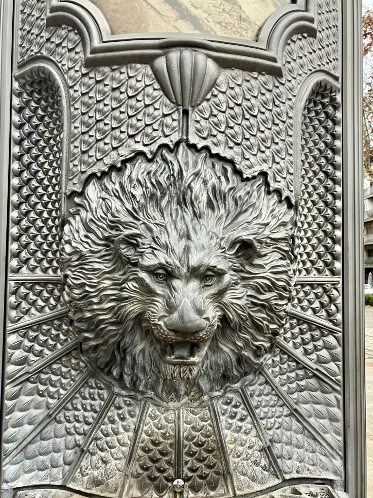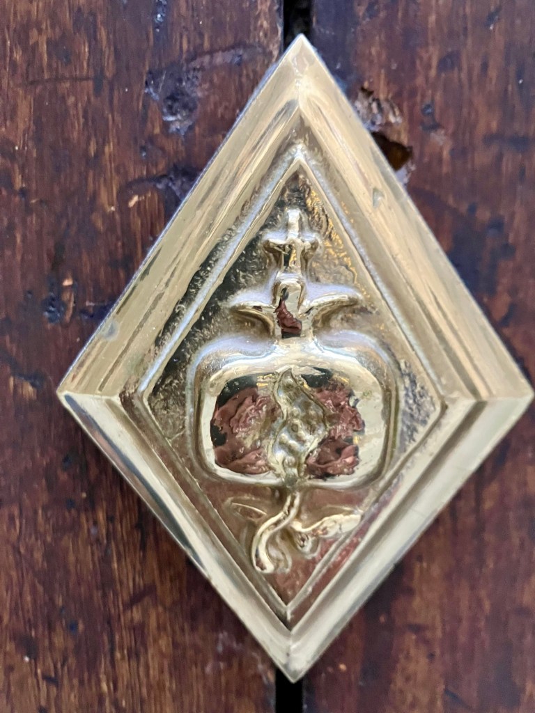 Granada Split. On the facade of a buildingDoor decorAt the Alhambra Grenadine bollardsIn Granada Cathedral A tree full of the real thing, or so I thought Don’t you touch my fruitSouvenir