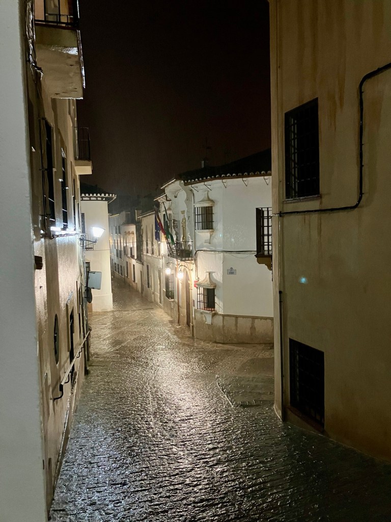 I arrived (via Antequera…) at 9pm to rain. There were no taxis outside the station. I checked on my phone – my accommodation was a 10 minute walk away so off I went. I was so excited to have arrived and I wanted to get a feel for the town.