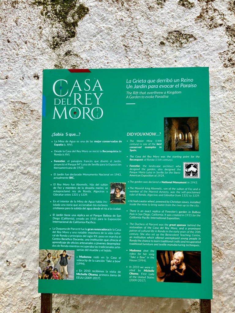 It was drizzling. I kept walking until I came to a building which fascinated me. It was the Casa del Rey Moro. I debated whether to enter, and saw this sign: