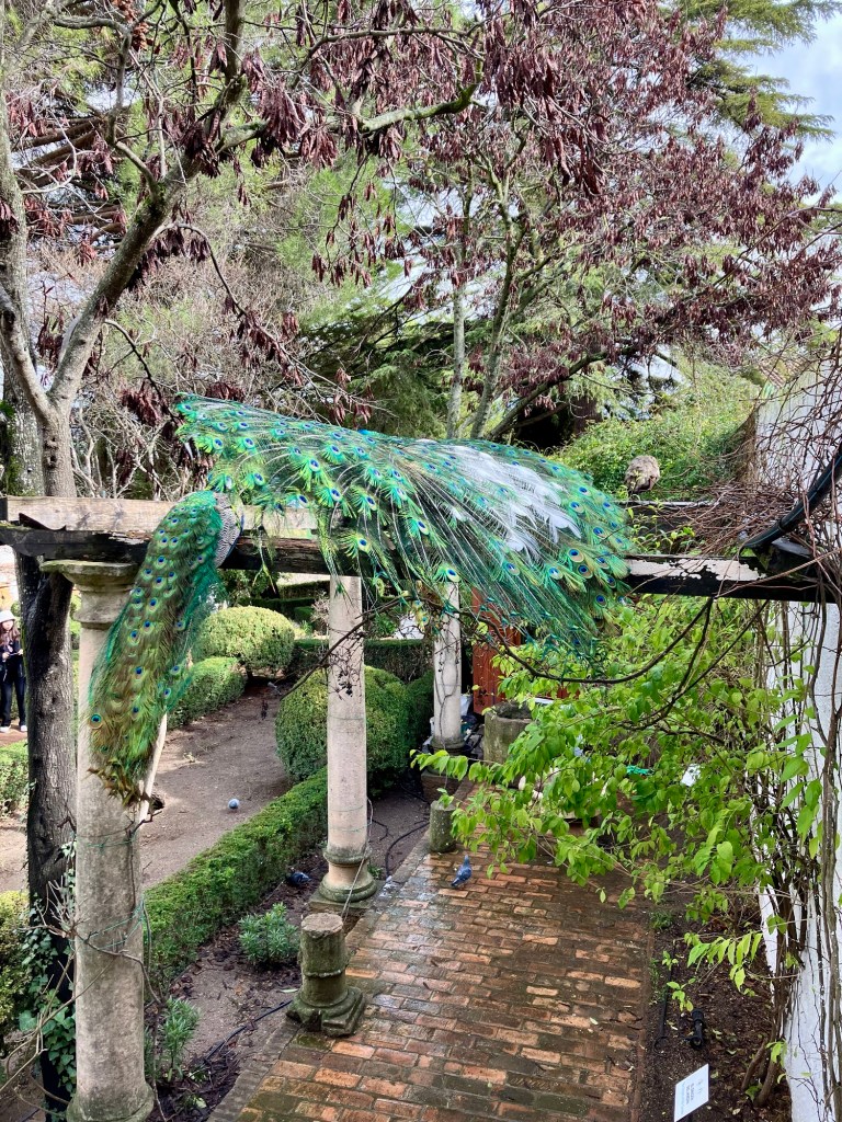 Unfortunately the house is derelict, but the gardens were stunning. There were even peacocks perched on the pergola: