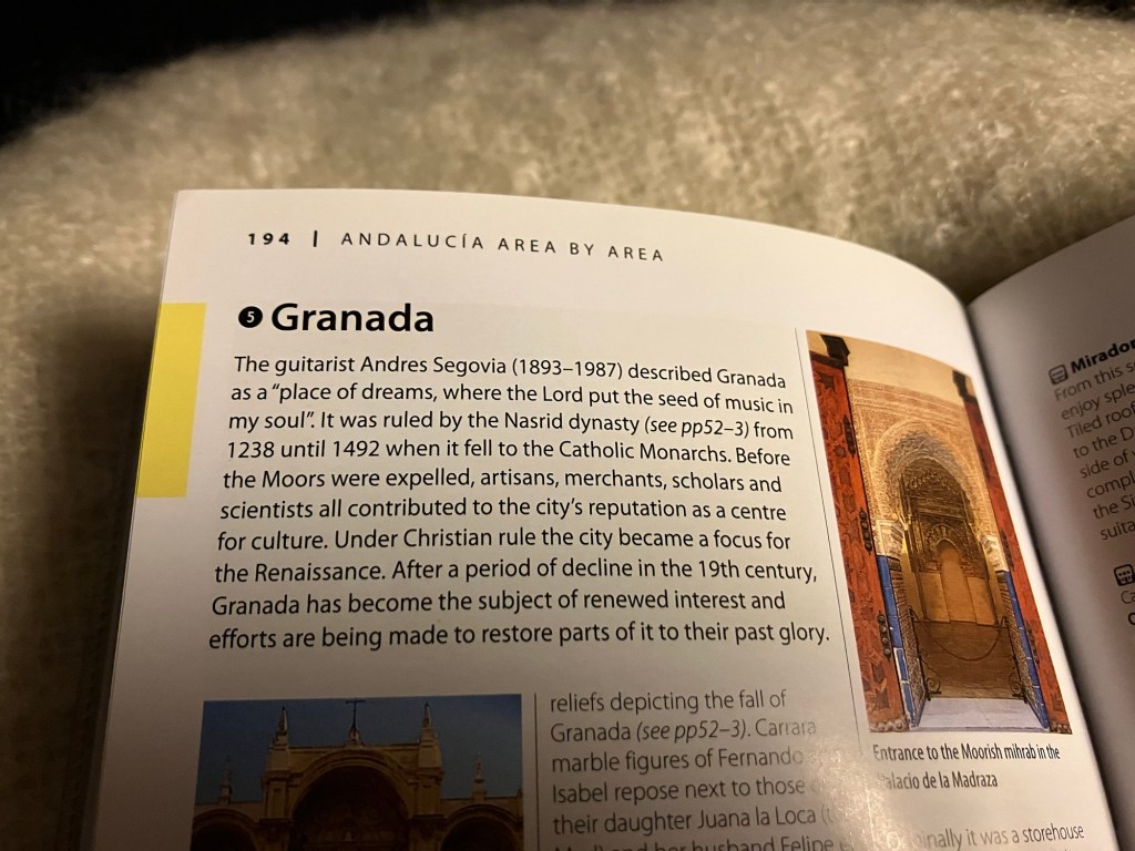 Excerpt from a travel guide I scanned through before leaving. I concur. Guitars were prevalent in Granada, a very musical cityWhere’s the harperria?