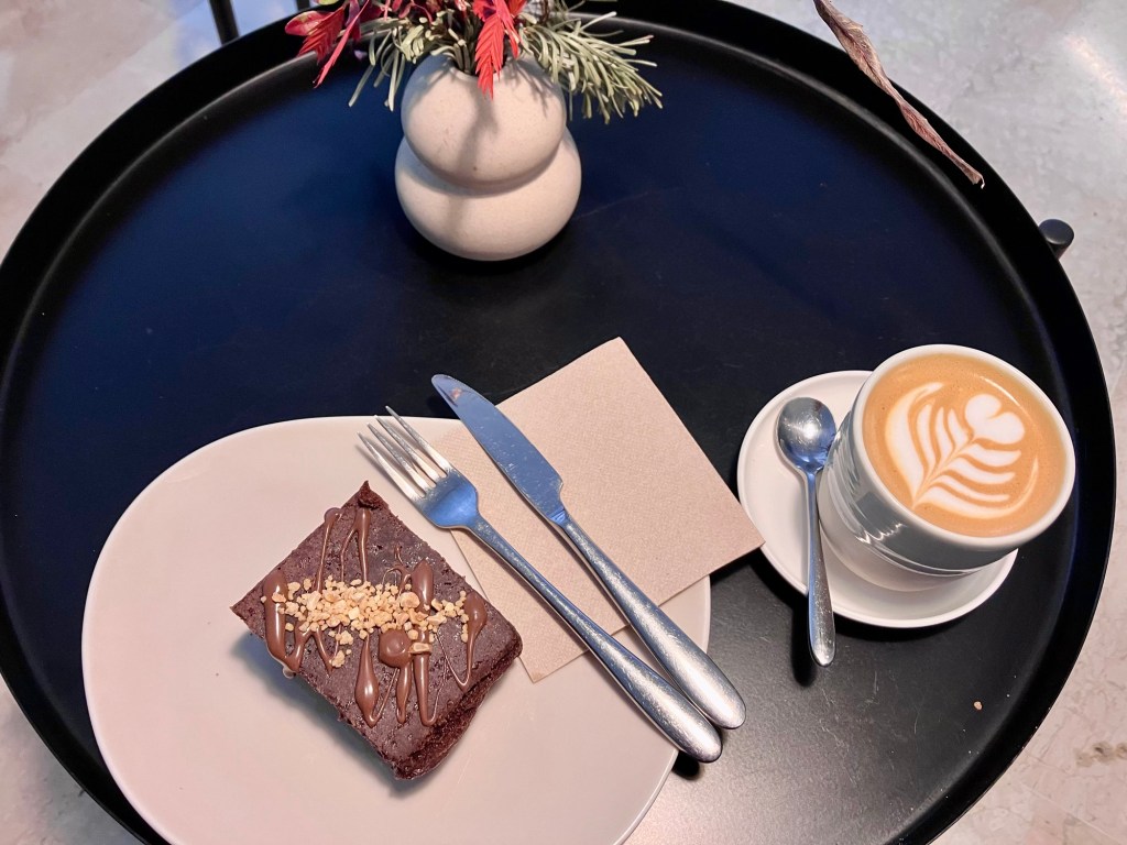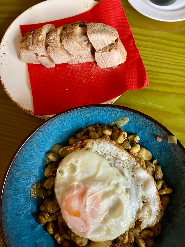 Soup tapaGranada speciality of broad beans, ham and egg. I love broad beans and these were delicious Exceptionally good coffee and brownie at Despiertoo, an excellent recommendation Almond croissant to soak up the Minuit coffee